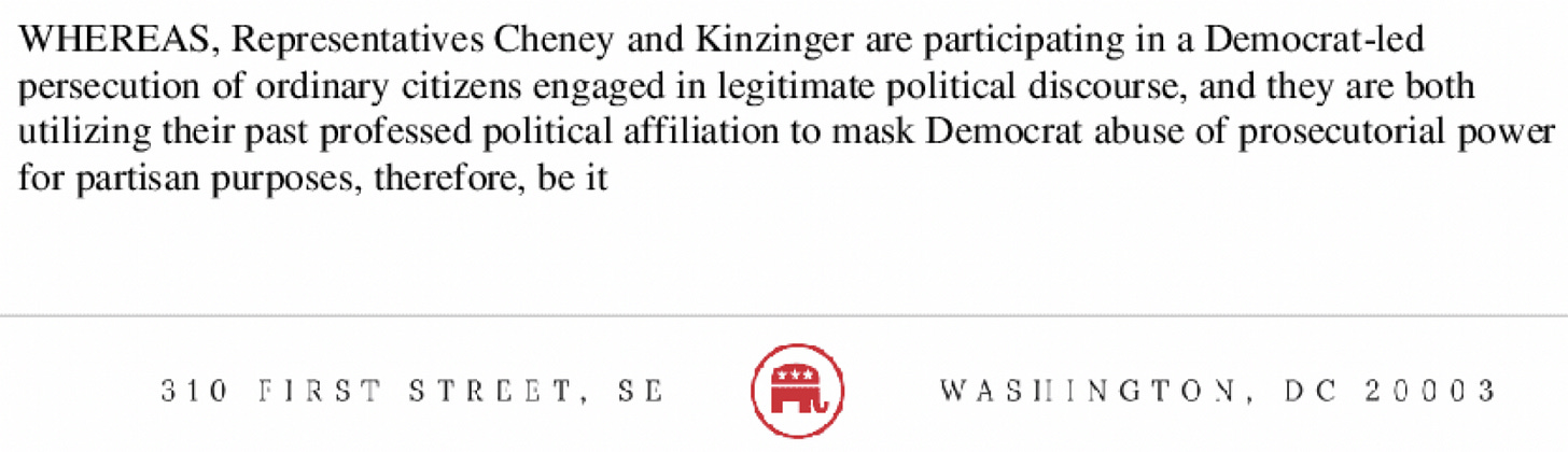 Republican National Committee Chair Ronna McDaniel tried to walk it back on Twitter, amending “that had nothing to do with violence at the Capitol.” But the document doesn’t say that. So the best we can say is the Republicans who voted for it wanted to denounce the Jan. 6 investigation enough that they didn't notice or didn’t care that it didn’t distinguish what they were defending from the violence.
