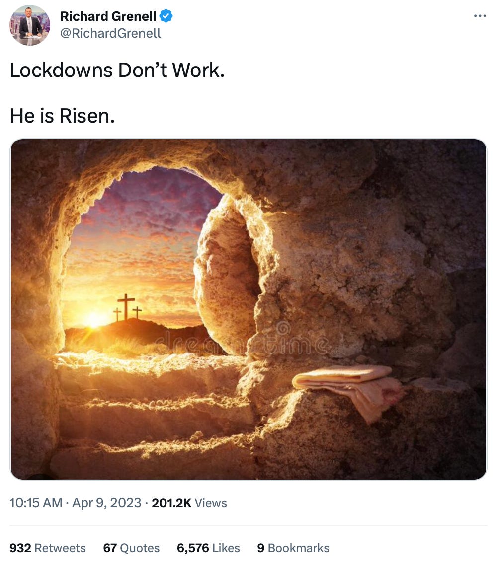 He can’t even share an Easter message without infusing it with a lib dunk.
