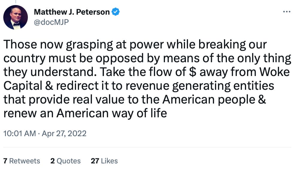 It is perhaps fitting that we would see, in a hyperpolarized age, marketing gimmicks dressed in the guise of responsible civic duty yet calibrated to exert maximal ideological pressure—e.g., “take money away from woke capital and give it to corporations that don't hate you!”