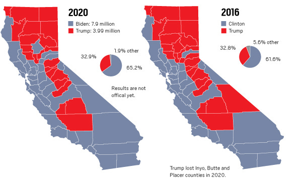 2016 and 2020 presidential results do not perfectly match the 2021 recall vote and COVID case map, and one shouldn’t overstate the connection. There’s some randomness in COVID spread, Joe Biden did better than Hillary Clinton, and governor recalls are not presidential elections. County-level data smooths over some variation, especially since some of these counties have millions of people.