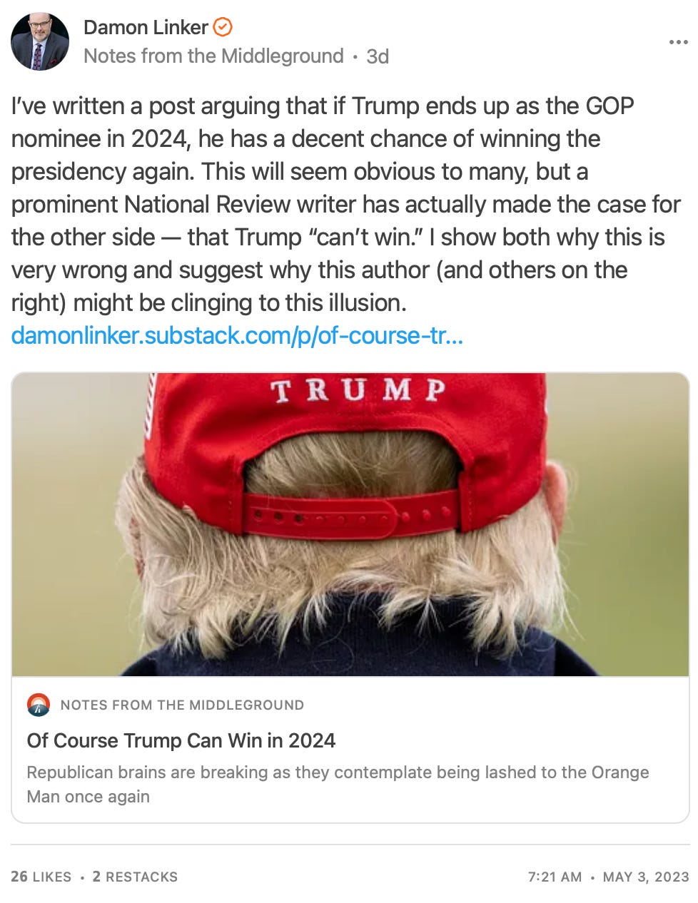 Welcome to DiscRep, Berny Belvedere’s daily guide to the public discourse for Arc members. Got something you think I should include in a future entry? Write me at berny@arcdigital.media. To discuss any of today’s items, post a comment below.